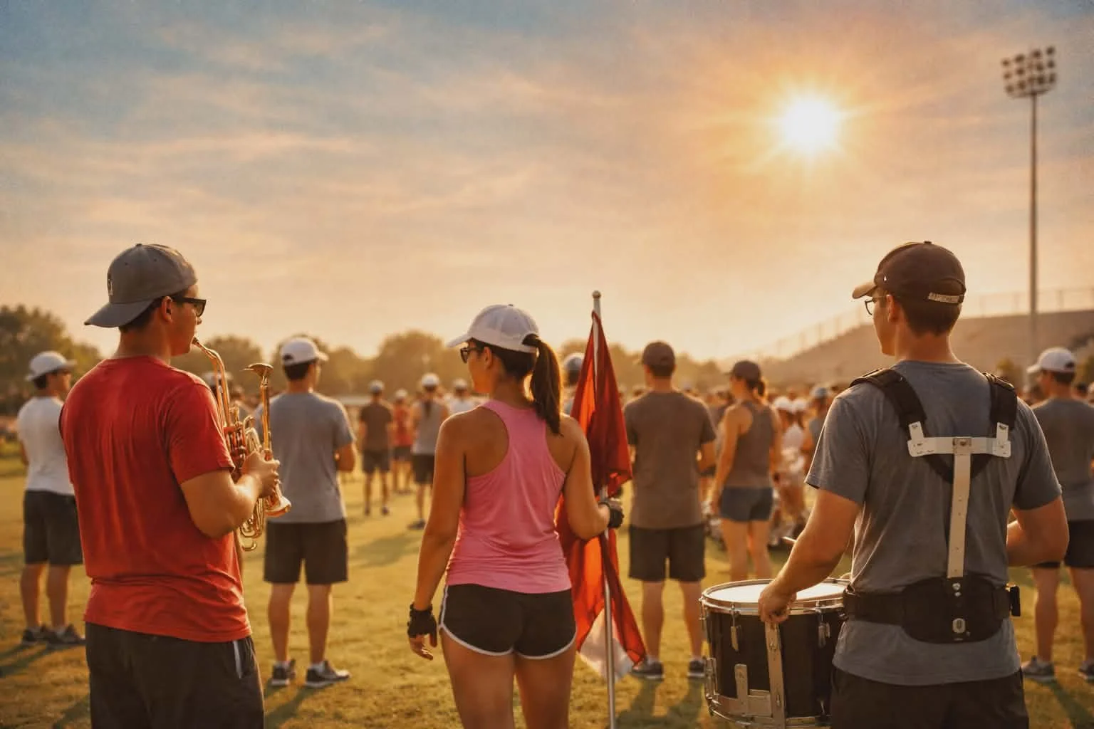 /For those of us who’ve been in the marching arts since the ’80s, band camp was a time of simple goals—dots on the field, notes in the air. Band camp was that time in late July when we stood at pseudo-attention under the blazing sun, skin sizzling, while each chart’s coordinates were carefully painted onto the asphalt.